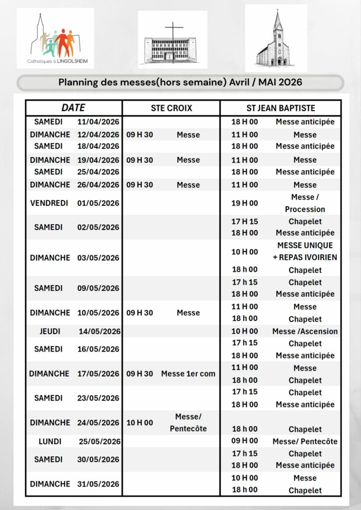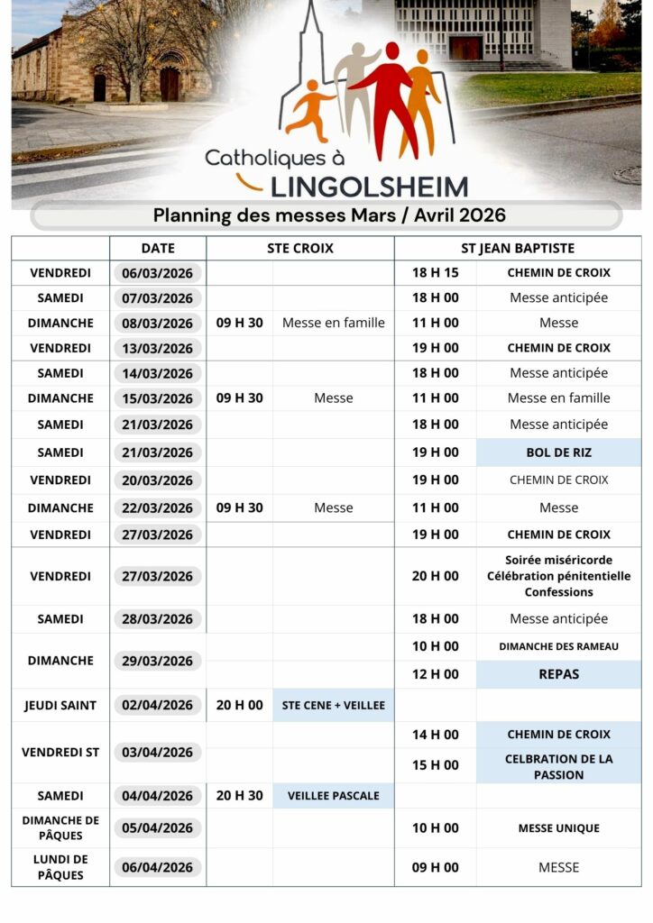 Permanences au presbytère: 2 rue de l’école 67380 LINGOLSHEIM Tél. 03.88.78.16.45